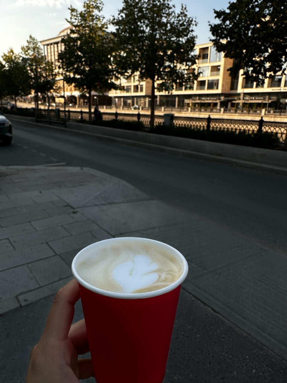 В 80% случаев беру эспрессо. Обычно мы берем по 2 чашки на человека с разницей 15-20 минут.